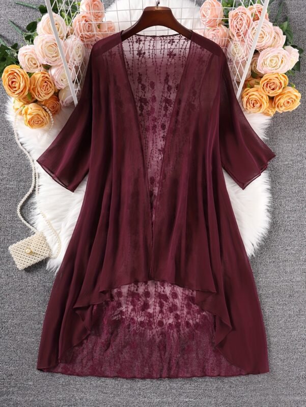Summer Solid Color Lace Patchwork Casual Open Front Jacket For Holiday Party Clothes