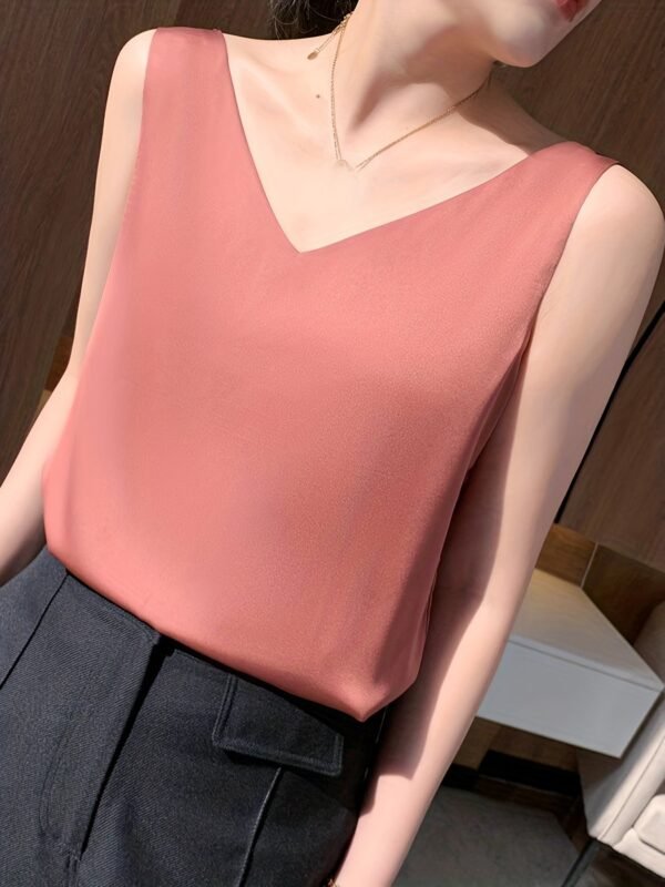 Velvet Boat Women?S Sleeveless V-Neck Tank Top – Soft Satin Finish, Loose Fit For Summer Layering, Lightweight & Breathable Polyester Blend, Elegant Solid Color Design, Breathable Clothing | Sleeveless Fashion | Satin Finish Top