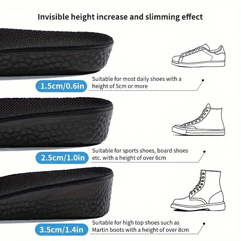 1Pair Inner Heightening Insoles, Men’S And Women’S Invisible Comfortable Soft Sole, Sports Shock Absorption Sweat-Absorbing Insoles