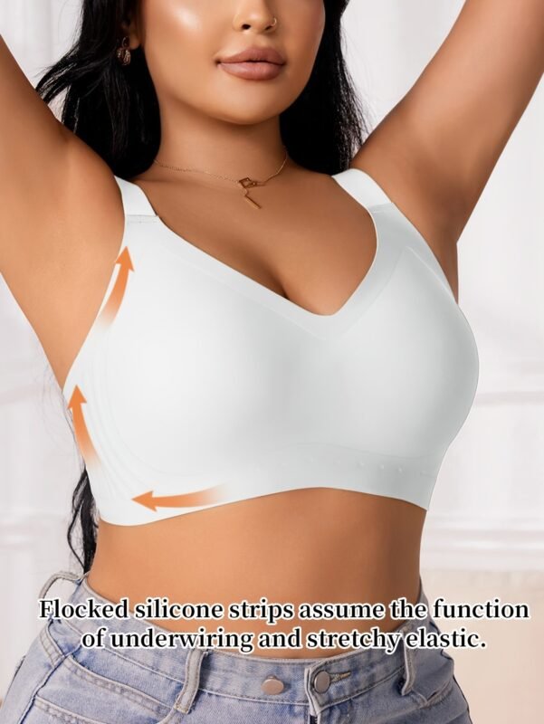 Plus Size Elegant Bra, Women’S Plus Seamless Solid Full Cover Comfort Simple Bra With Removable Pads