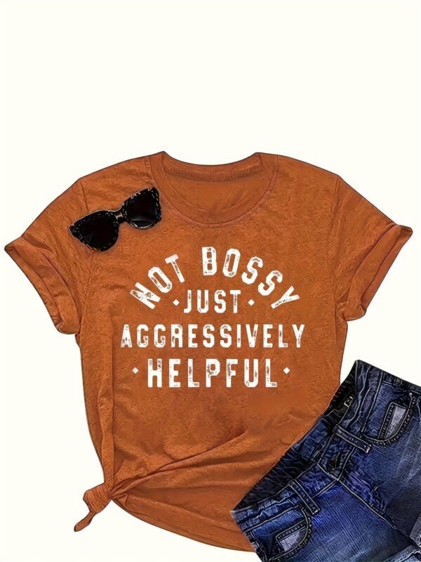 Women’S Casual Short Sleeve T-Shirt – Vibrant Red Relaxed Fit Round Neck Top With Bold “Not Bossy Just Aggressively Helpful” Graphic Print, Machine Washable Summer Tee For Casual Attire, Comfortable Clothing, Nontransparent Fabric