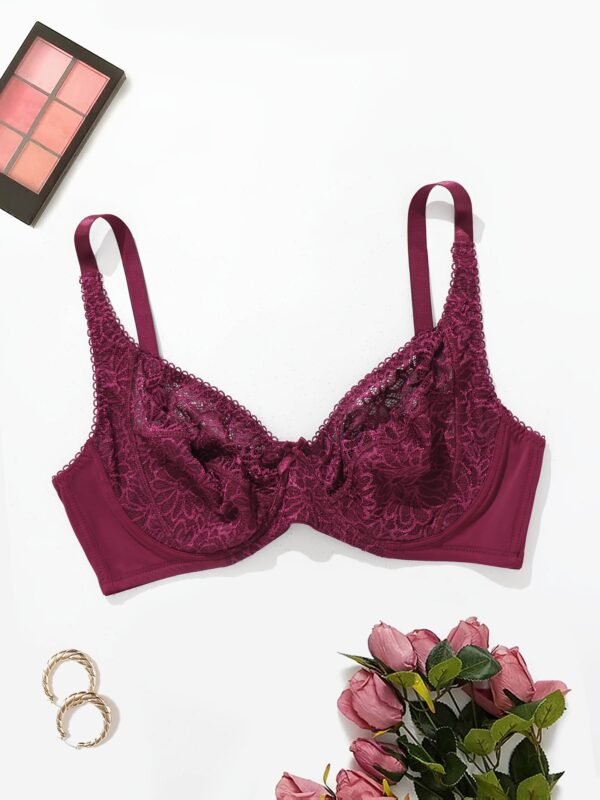 Floral Lingerie Elegant Plus-Size Women’S White Lace Bra – Sexy Floral Cut-Out Design, Ultra-Thin Breathable Fabric With Underwire Support, Hand Washable