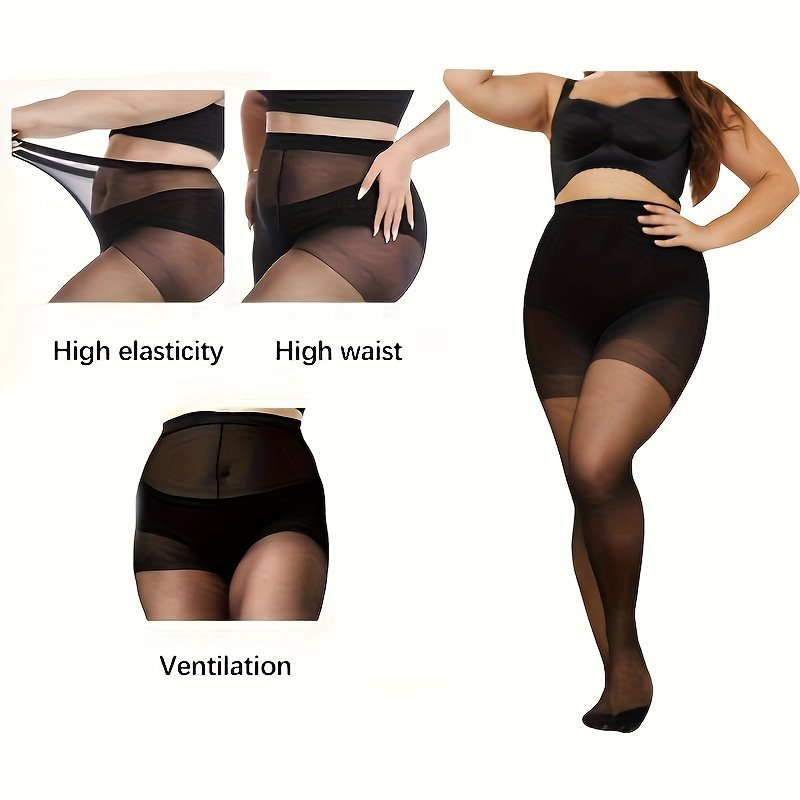 1/2/3/4 Pairs Women’S Plus Size Sheer Pantyhose, High-Waist Control Top Tights, Soft Black Socks With Reinforced Toes, Breathable Thin Everyday Stockings, Women’S Hosiery And Socks