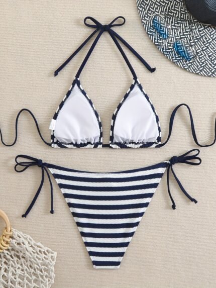 New Multi-Color Bikini 2024 Summer Tie-Up Halter Neck Sexy Triangle Swimsuit For Women