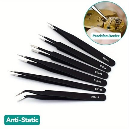 6Pcs Esd Anti-Static Stainless Steel Tweezers – Precision Maintenance & Industrial Repair Curved Tools For Home Working & Model Making