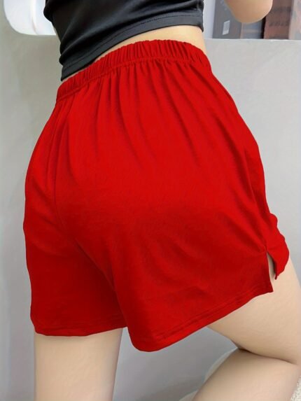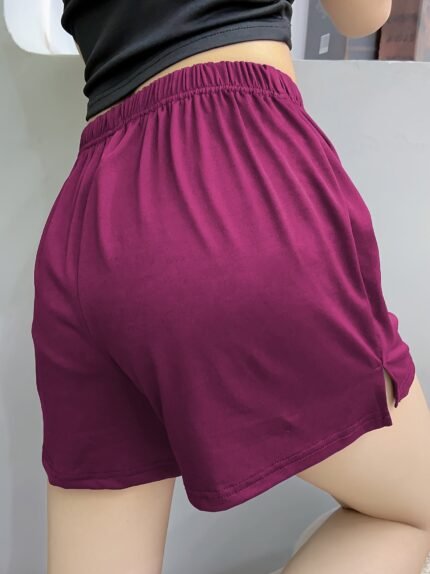 Women’S Casual Sleep Shorts, Plus Size Solid Elastic Waist Side Split Lounge Shorts