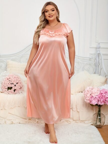Plus-Size Women’S Sexy Lace Patchwork Solid Color Short Camisole Nightgown