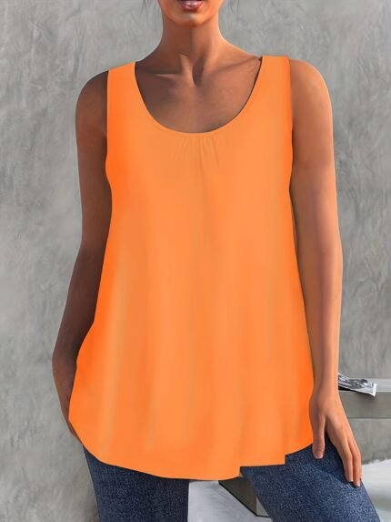 Solid Color Versatile Sleeveless Chest Pleated Casual Vacation Top