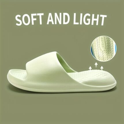Unisex,, Lawensui Ultra-Soft Eva Slides For Men – Comfortable, Non-Slip, Quick-Dry, Solid Green, 3.5Cm Thick Sole Casual Summer Slippers, Hand Washable, Slip-Resistant Footwear|Minimalist Slipper Design|Ergonomic Slipper Design, Suitable For Women