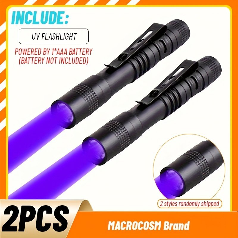 1/2Pcs 395Nm Uv Black Light Flashlight,Ultraviolet Invisible Ink Torch,Ore Moneyscorpion Detection Lamp,Small Portable Pocket Pen Lights, Pet Urine,Hotel Inspection,Dry Stain(Notinclude Battery)