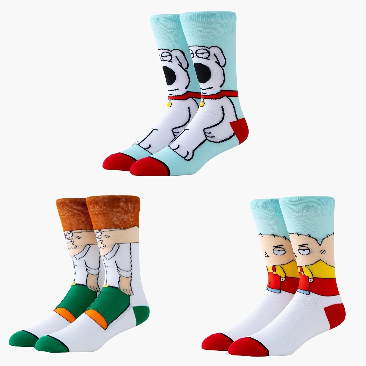 1/3/5 Pairs Of Men’S Cartoon Soft, Comfortable And Breathable Fun Round Neck Socks
