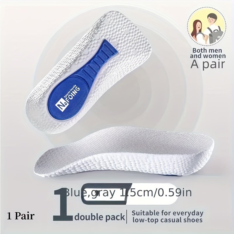 1.5-3.5Cm (0.59-1.38In) Invisible Height Increase Insoles Light Weight Soft Elastic Arch Support Breathable Heel Lifting Inserts Arch Support Heel Lift Memory Foam Shoe Pads Orthopedic Soles