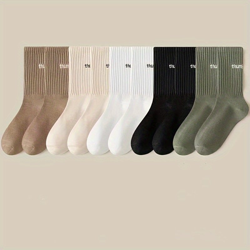 1/5 Pairs Unisex Casual Plain Color Socks, Fashion Versatile Socks, Breathable Comfy Crew Socks, Casual Sports Socks For Men Women