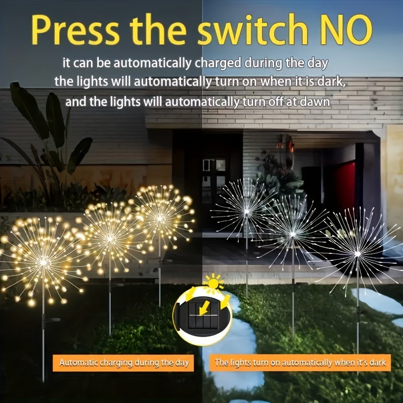 1 Pack Of 200/150/60 Led Solar Garden Lights, Solar Fireworks Lights With 8 Lighting Modes Outdoor Light Suitable For Garden Patio Pathway Party Wedding Decoration