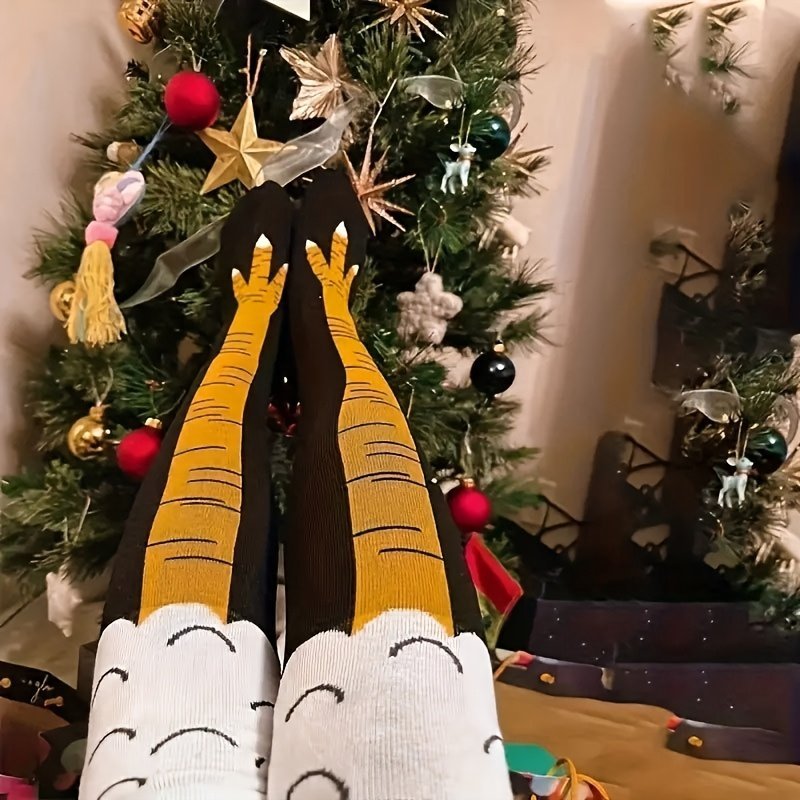 1 Pair Chicken Claw Print Knee-High Socks, 95% Polyester 5% Spandex, Animal Pattern Knit Fabric, Machine Washable, Couple’S Knee-Length Stockings