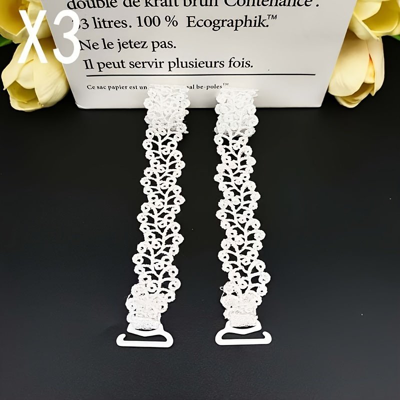 1 Pair Floral Bra Straps – Adjustable Replacement Shoulder Straps For Lingerie, Beige/White/Black With Metal Clasps, Polyester Fabric, Women’S Fashion Accessories