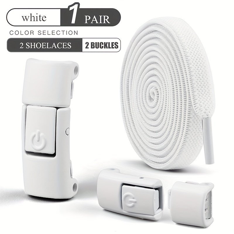 1 Pair Free-Tie Shoelaces Set, 2Pcs Elastic Shoelaces & 2Pcs Shoelaces Buckles For Sneakers Canvas Shoes