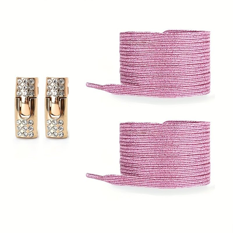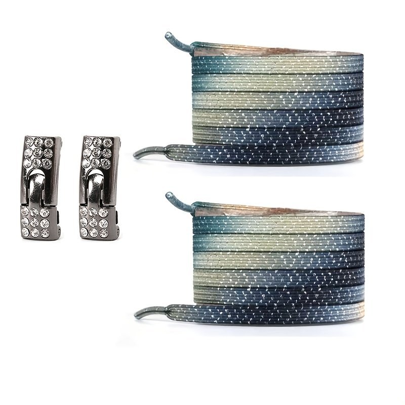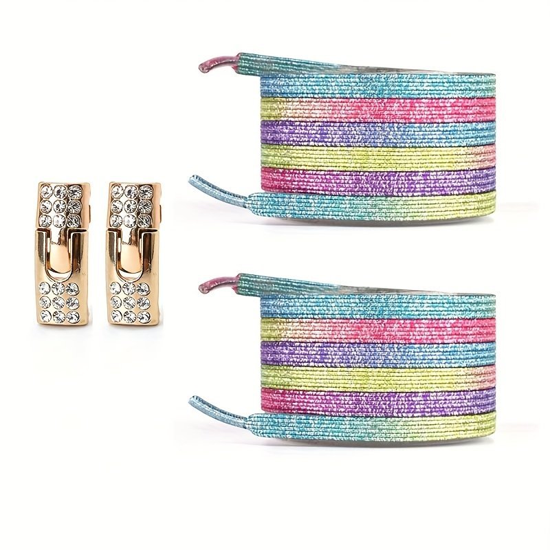 1 Pair Of Rhinestone Buckle Shoelaces, No Need To Take Off Shoes, 2 Elastic Bands And 2 Shoe Lace Buckles, Colorful Fashion Gradient Rainbow Laces Suitable For Casual Shoes And Sports Shoes