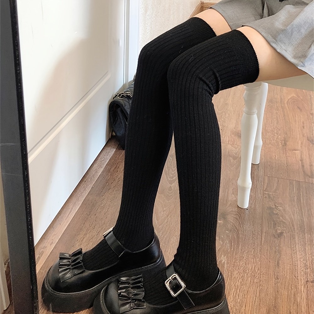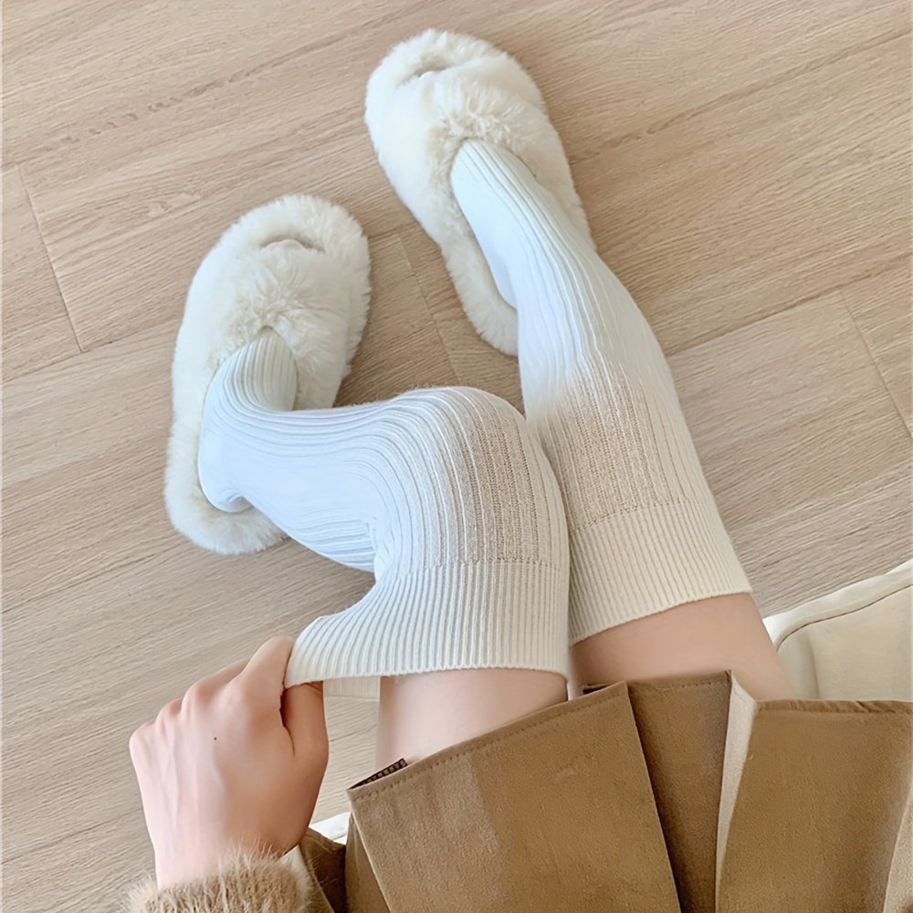 1 Pair Of Women’S Autumn And Winter Thickened Over-The-Knee Socks Solid Color Simple Women’S Socks Vertical Striped Socks Warm Over-The-Knee Socks Trend