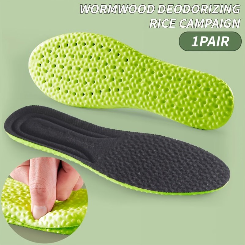 1 Pair Wormwood Deodorizing Insoles, Breathable Sweat-Absorbent Eva Shoe Pads, Shock-Absorbing Elastic Running Inserts For Men & Women, Comfortable Soft Sports Footbeds For Outdoor Activities