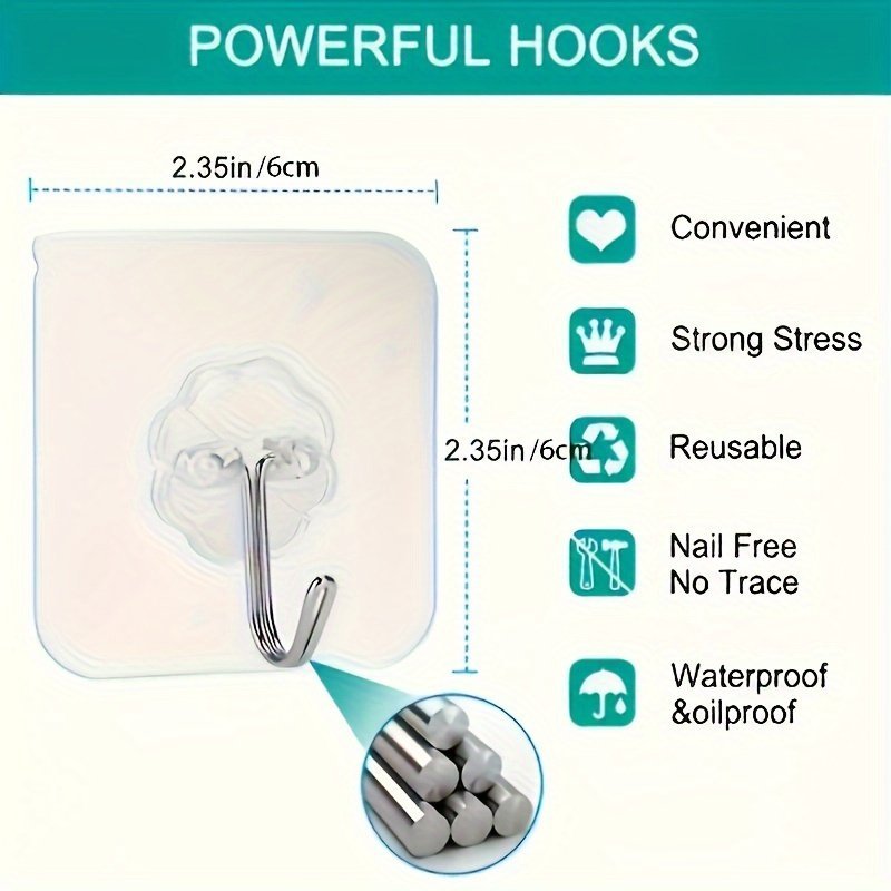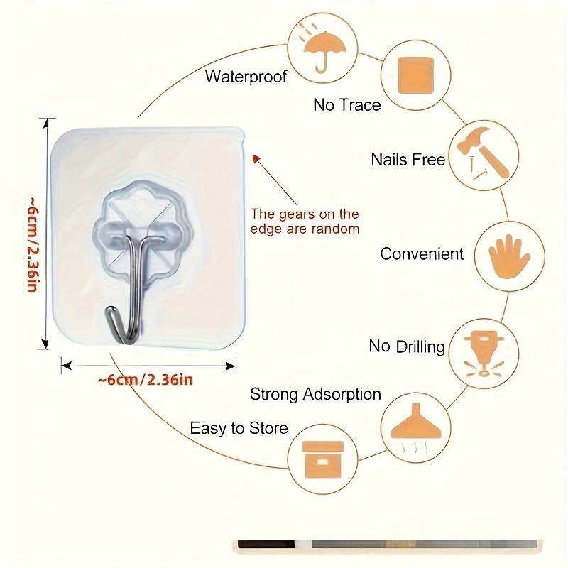 10/20/30-Piece Set Of Traceless Wall Hooks – Casual Style Plastic Utility Hooks Set For Keys, Hats, Towels – Easy To Install, No Need To Punch Holes, Self-Adhesive, Suitable For Bathroom, Bedroom, Office, Kitchen Storage Box