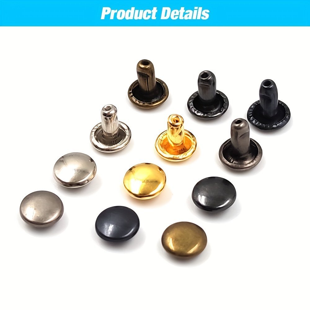100 sets 6x6mm Metal Double Cap Rivets Stud Round Nail Rivet for Leathercraft Accessories Repair Shoes Bag Belt Clothing Garment