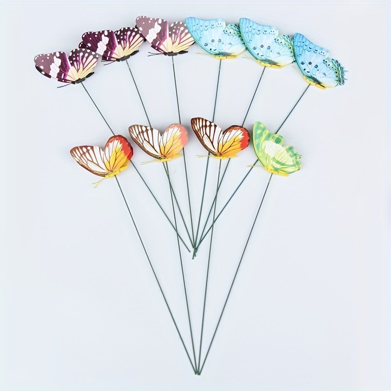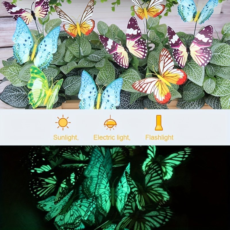 10Pcs Colorful Luminous Butterfly Stakes, 3D Artificial Butterfly Decor, Garden & Patio Decor, Random Pattern