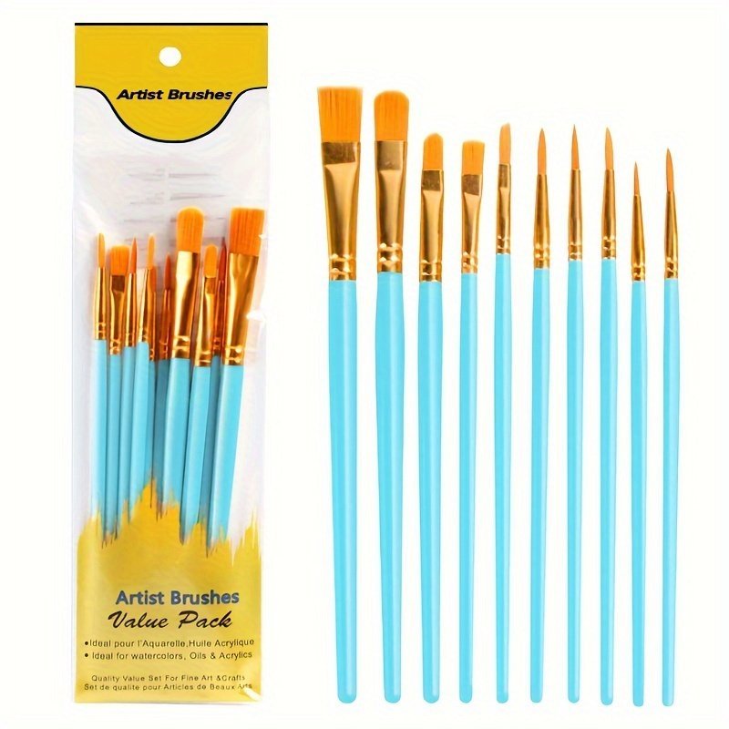 10Pcs Paint Brushes Set Artist Paintbrush Nylon Round Pointed Flat Head For Acrylic Painting Oil Watercolor Canvas Board Professional Acrylic Paint Brushes 1 Set Of 10 For Students Various Pointed Tip Artist