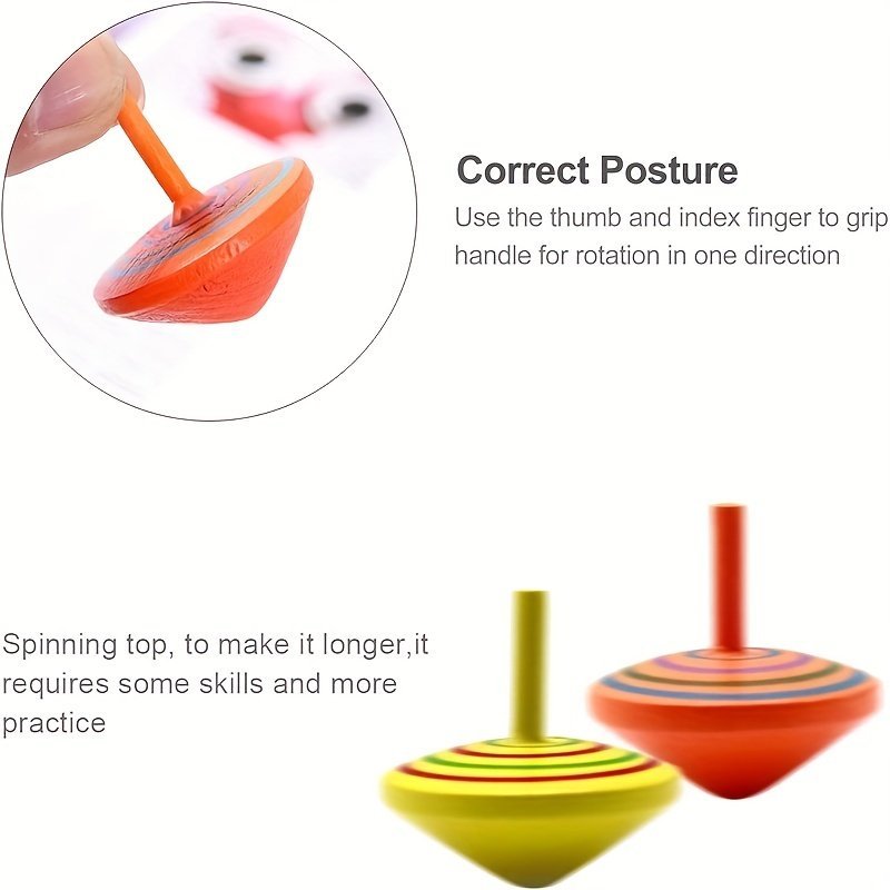 10Pcs Wood Spinning Tops – Non-Toxic Safe Smooth Spherical Handmade-Style Kids Toys With Rainbow Colors & Spiral Patterns, Spinners For Party Favors, Kindergarten Play, & (+)
