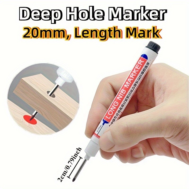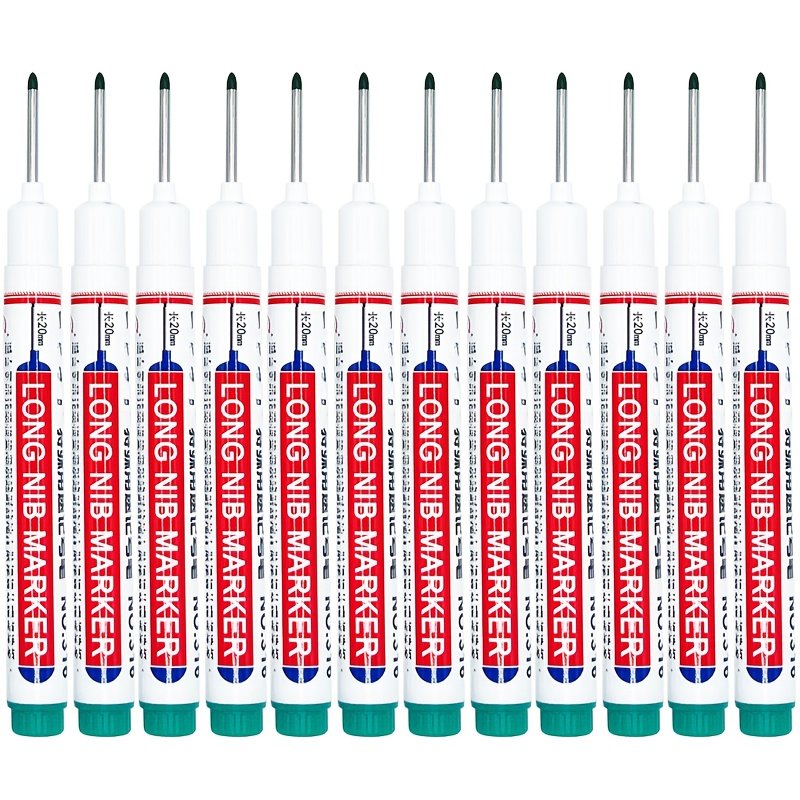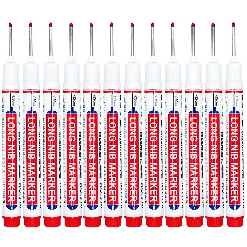 12Pcs Precision Deep Hole Markers – 20Mm Long Nib, Waterproof Ink Pens For Woodworking, Metal & Plastic – Red, Blue, Green, Black