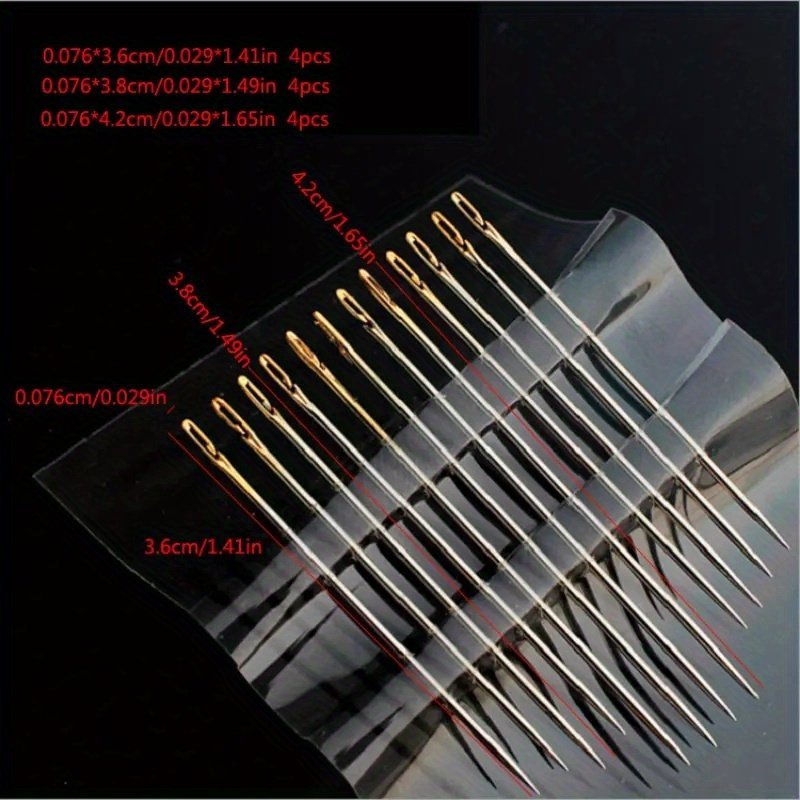 12Pcs Stainless Steel Easy Thread Side Hole Sewing Needles, Hand Stitching Pins For Seniors, Diy Home Craft Supplies – White, Stitching Pins