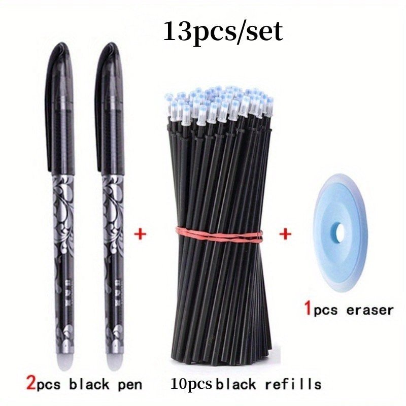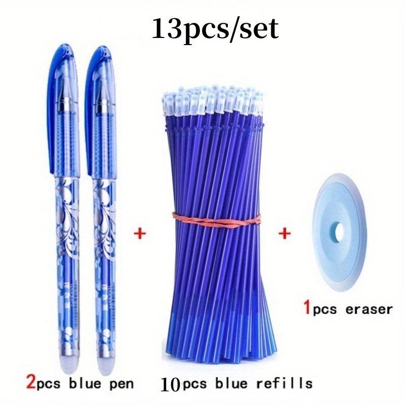 13Pcs/Set Erasable Gel Pen Set 0.5Mm Blue Black Color Writing Gel Pens Refills Rods Washable Handle For School Office Stationery Supplies(2 Pens+1 Eraser+10 Refills)