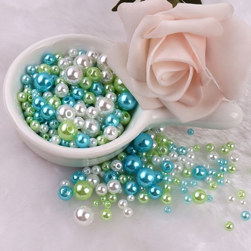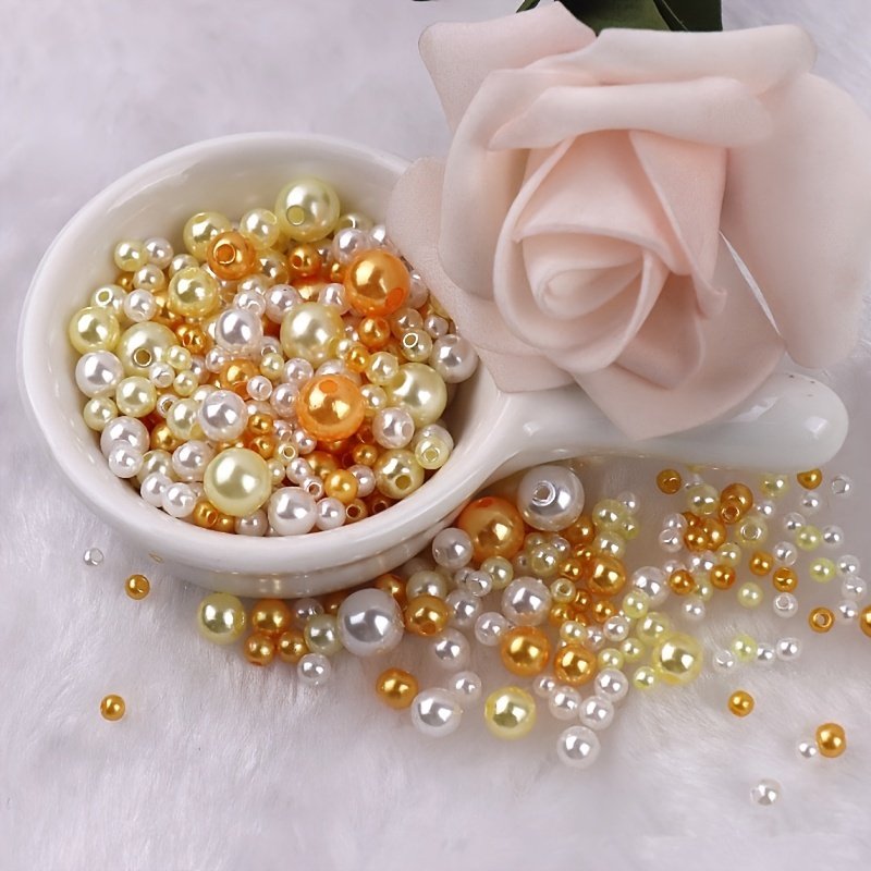 150Pcs Imitation Pearl Beads, 3-8Mm Double Hole Round Abs Plastic Loose Beads For Diy Crafts And Jewelry Making Accessories