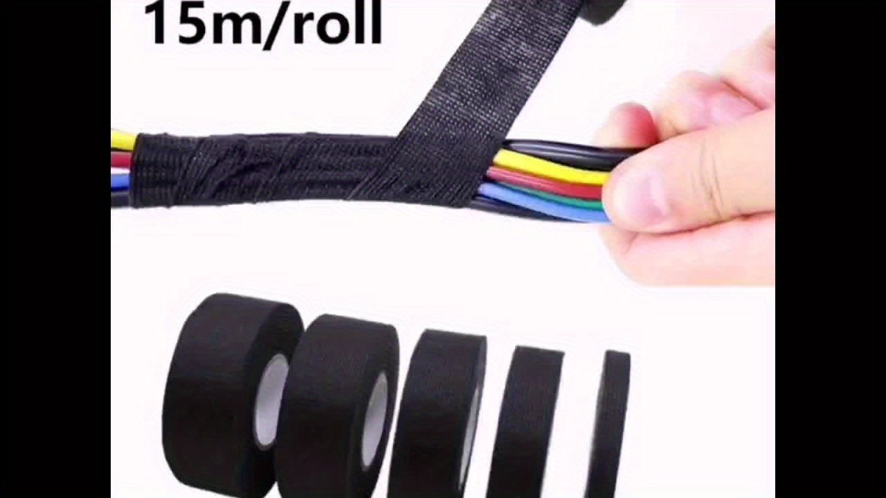 15M Heat-Resistant Flame Retardant Adhesive Cloth Tape For Car Home Cable Harness Wiring Loom Protection Insulation Tape Sticker Sound Noise Reduction Wrapped With Tape Car Horn Wiring Harness
