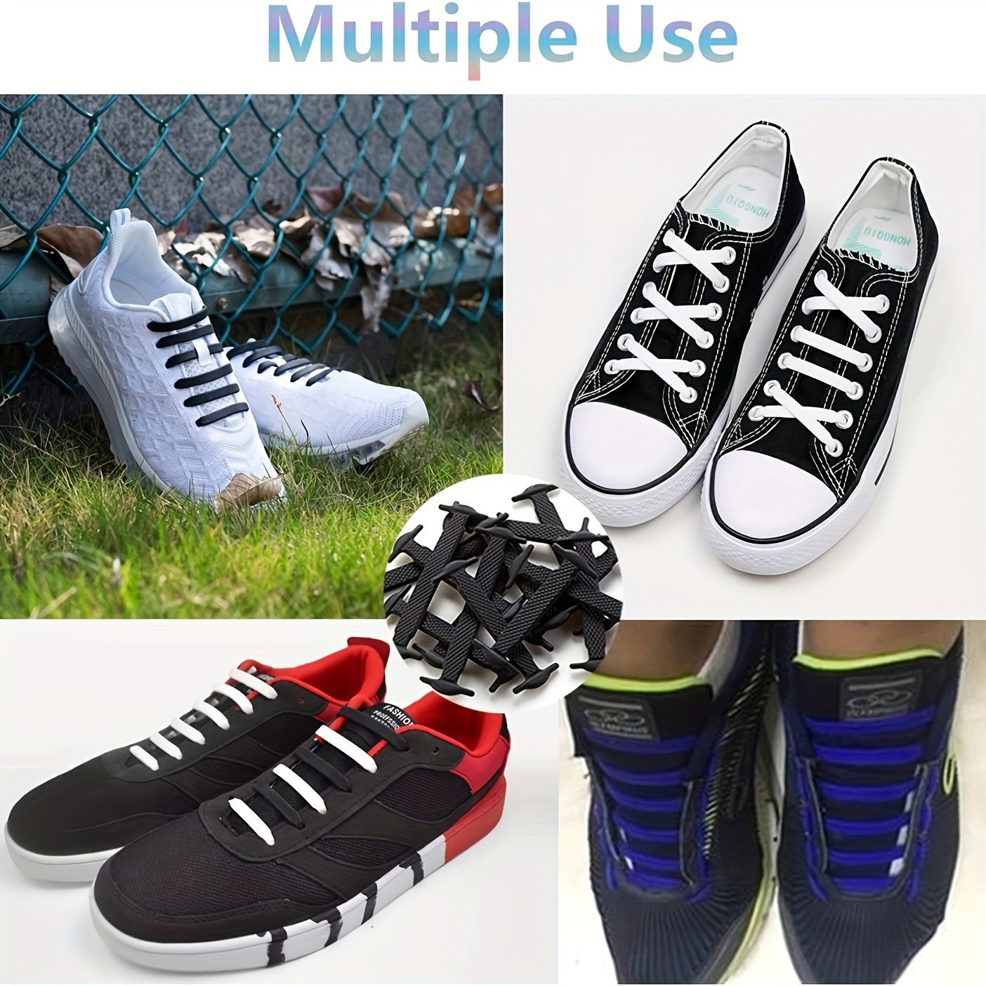 16Pcs No Tie Elastic Shoe Laces For Adults – Black & White Silicone Tieless Laces For Sneakers – Durable, Comfortable, And Hassle-Free Design