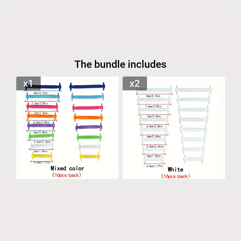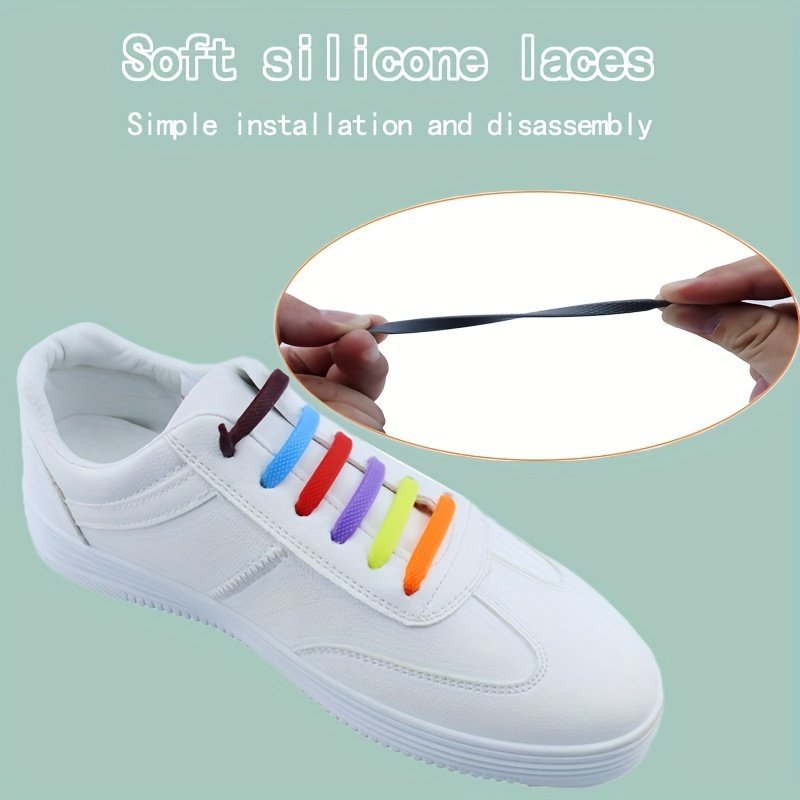 16Pcs Per Pack Of Elastic Silicone Shoelaces With No-Tie Clips, Versatile And Creative Design.
