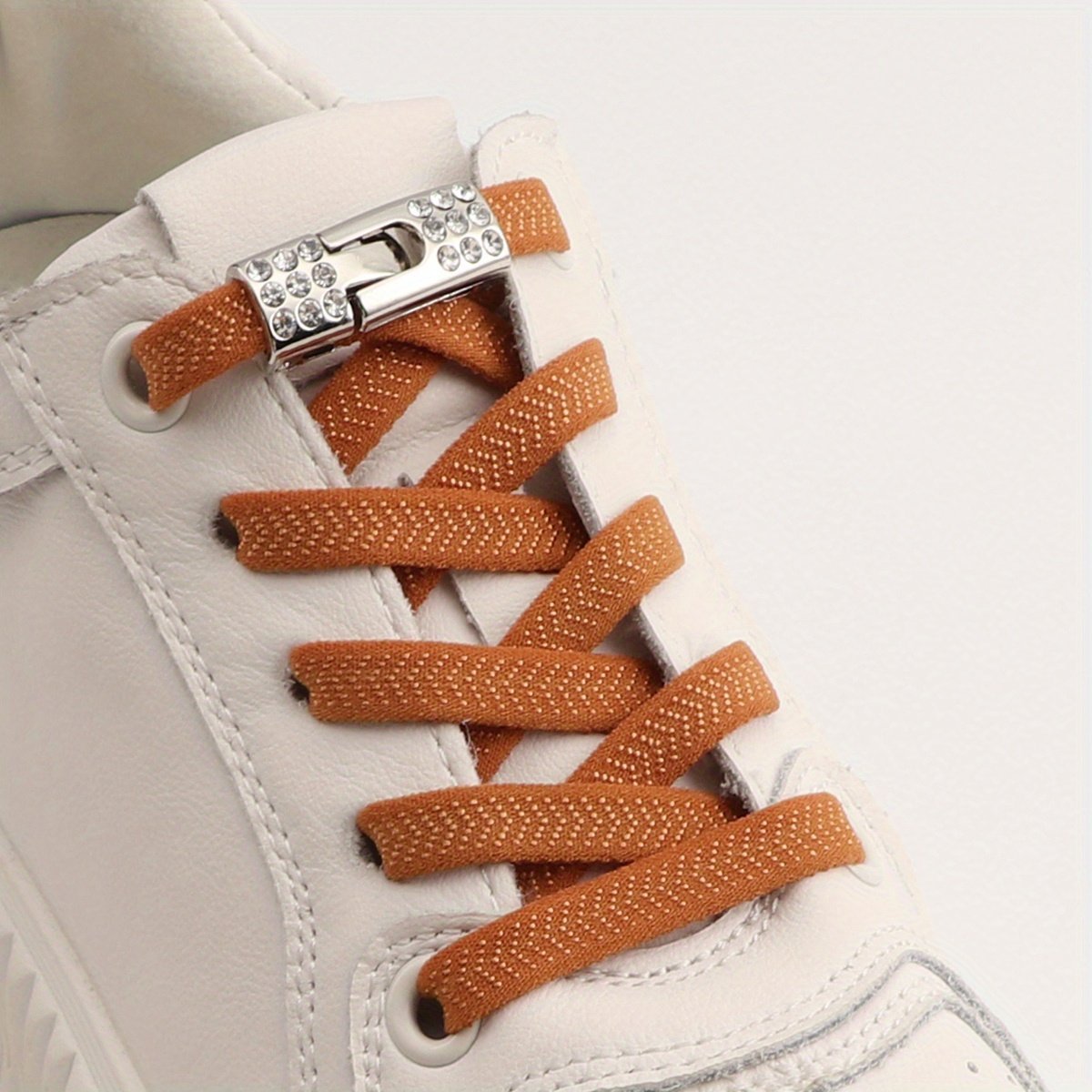 1Pair Rhinestone Decor No-Tie Shoelaces With Buckle, Polyester Fashionable Accessories For Sneakers