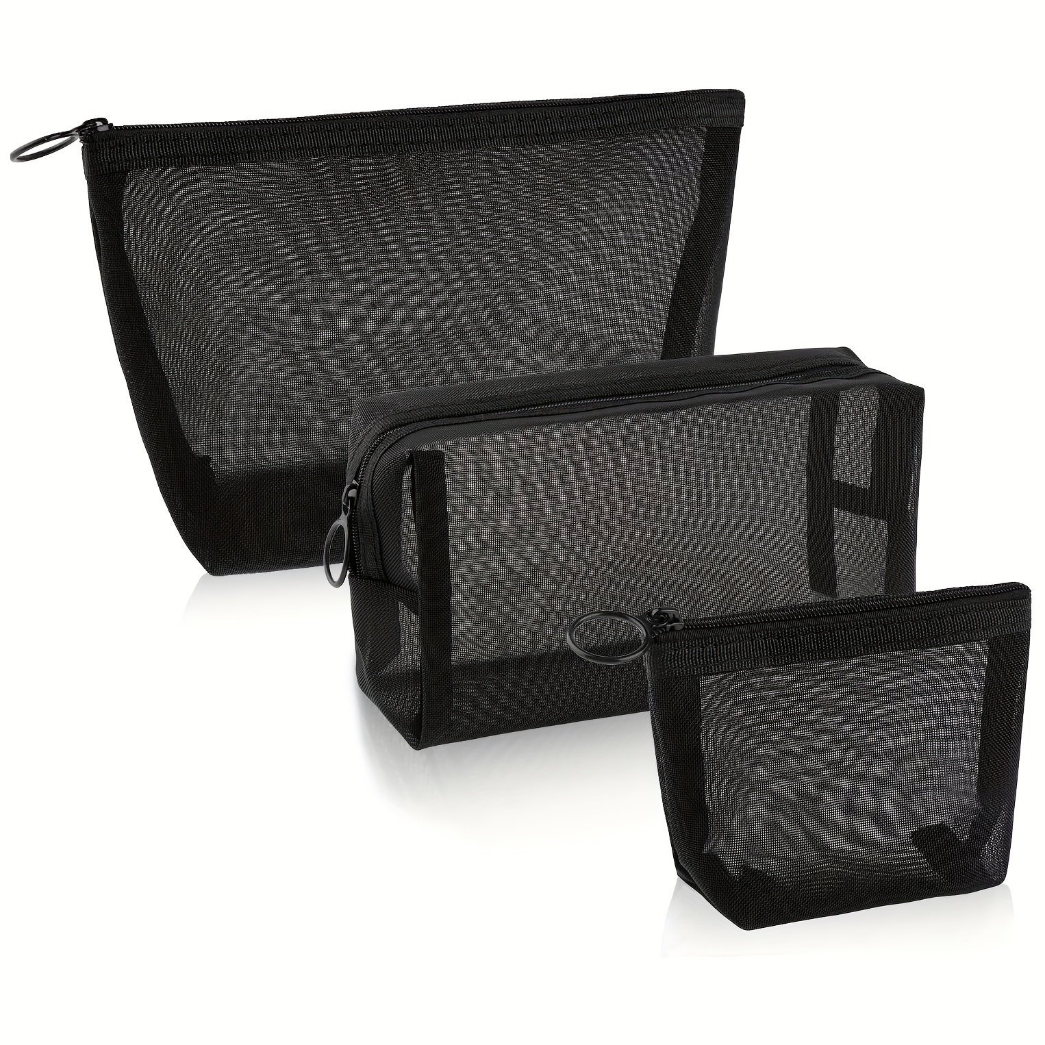 1Pc/3Pcs Mesh Cosmetic Bag, Portable Travel Storage Bag, Casual Zipper Travel Accessories