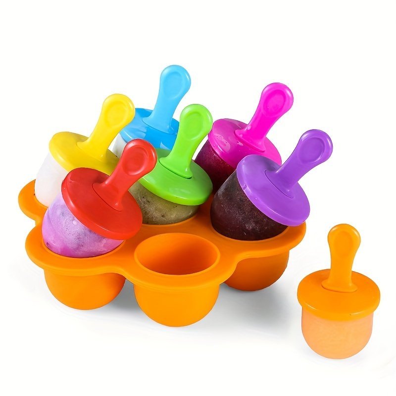 1Pc 7-Cavity Silicone Ice Cream Pops Mold – Food-Grade Non-Toxic Baby-Safe Diy Fruit Shake Maker With Easy-Pull Handles & Drip Tray, Vibrant Colors For Homemade Popsicles, Ice Cream, Smoothies – Summer Kitchen Accessories, Ice Cream Accessories