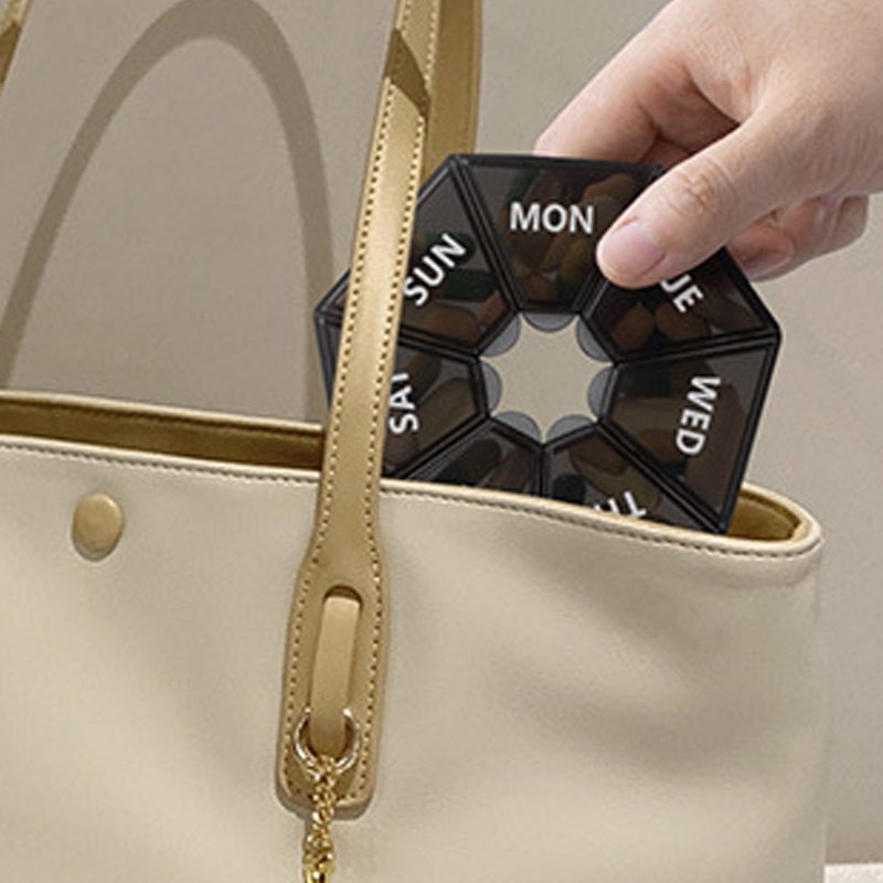 -Seven compartment sill storage box is printed with dates,easy to remind users the time for pills.