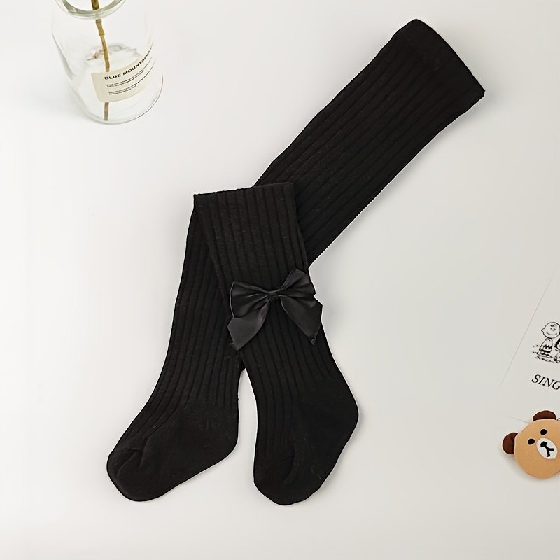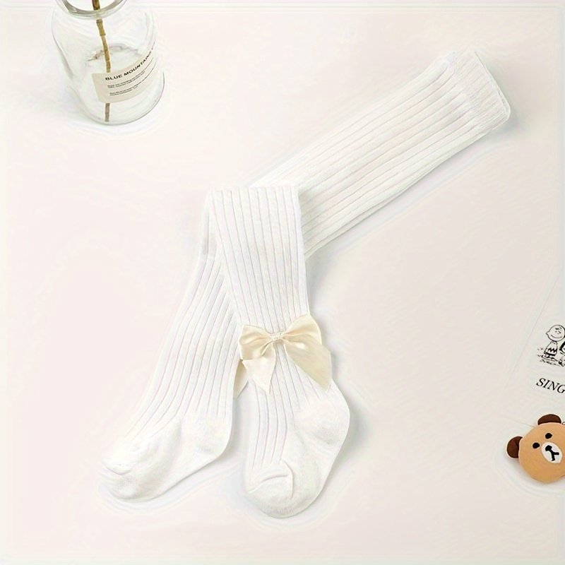 1Pc Baby Toddler Leggings Socks Girls Cute Bow Decor Solid Color Pantyhose Children’S Baby Thin Medium Thick Leggings Tights Socks Pants Dress Socks Dance Socks For Spring And Autumn Kids Tights