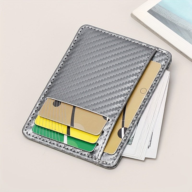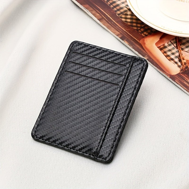 1Pc Black Pu Leather Slim Wallet With Carbon Fiber Design ? Minimalist Credit Card Holder & Coin Purse For Men, Perfect Gift For Birthdays, Holidays, And Everyday Use, Everyday Wallet | Modern Wallet | Textured Finish, Small Wallet
