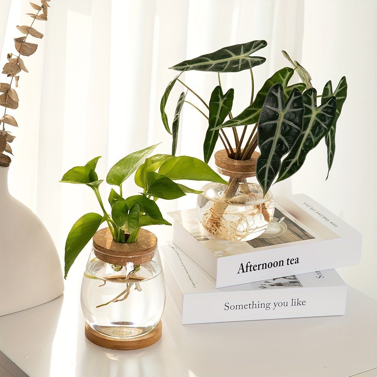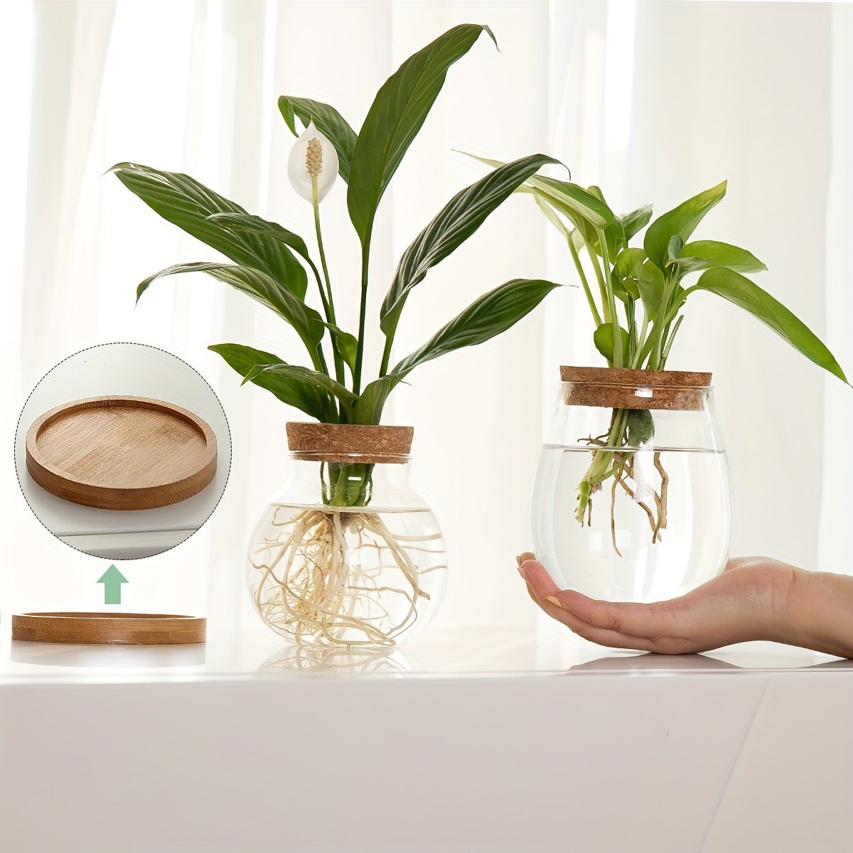1Pc Bottle With Wooden Stopper Bottle Hydroponics Flower Bottle Container With Lid House Plant Pots Glass Vases Container Flower Arrangement Vase Ecosystem Containe Creative Hydroponic Planter For Living Room, Office, And Desktop Garden Decor