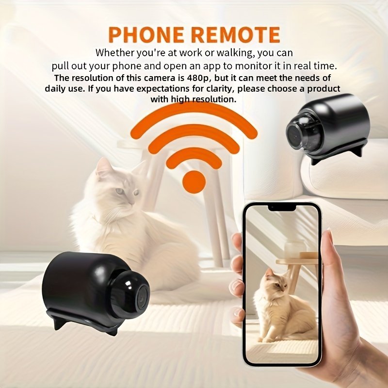 1Pc Camera, Video Surveillance Device, 480P Pixel, Wifi Connectivity, Mounted Receiver Camera, Mobile App Control For Viewing Surveillance, Suitable For Indoor Use In Living Room, Office, Car, Can Be Used As A Holiday Gift