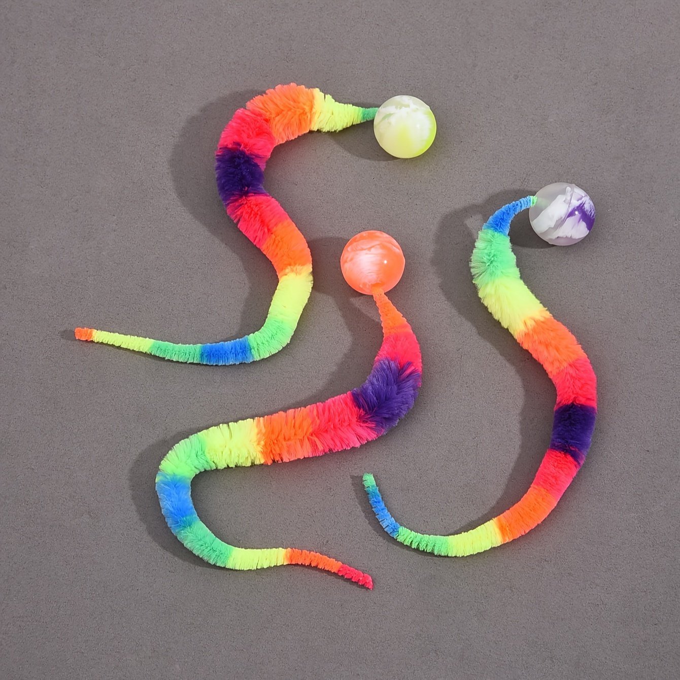 1Pc Cat Teaser Toy, Elastic For Caterpillar Bouncing Ball With Rainbow Worm For Pet Play