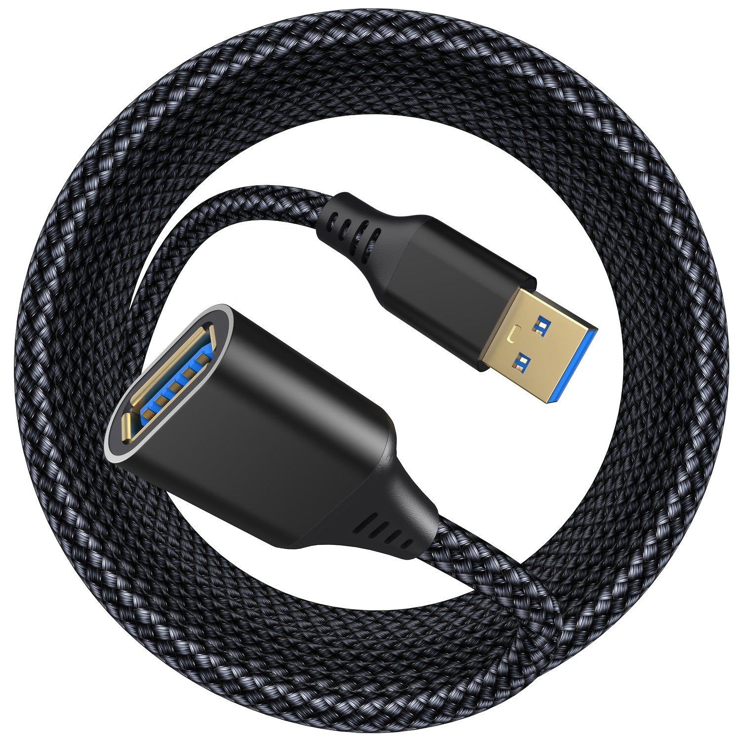 1Pc Durable Nylon Braided Usb 3.0 Extension Cable, 3.05Meter/201.17Cm/100.58Cm/48.77Cm, Type A Male To Female, 5Gbps High-Speed Data Transmission, Compatible With Desktop, Laptop, Keyboard, Mouse, External Hard Drives, Printers, Gamepads, Cameras, Projectors – No Power Loss, Long-Lasting Plug Stability