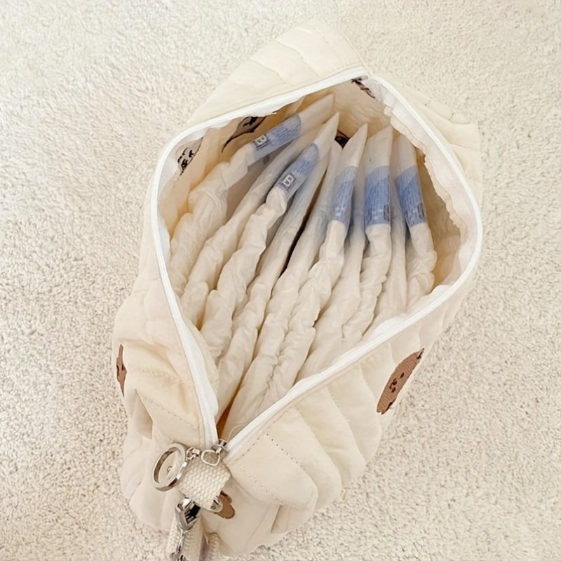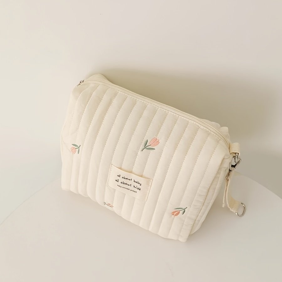 1Pc Embroidered Diaper Clutch Bag Embroidered Diaper Clutch Bag For Strollers, Polyester Quilted Organizer Pouch With Zipper, Cute Floral Design, For Ages 14+