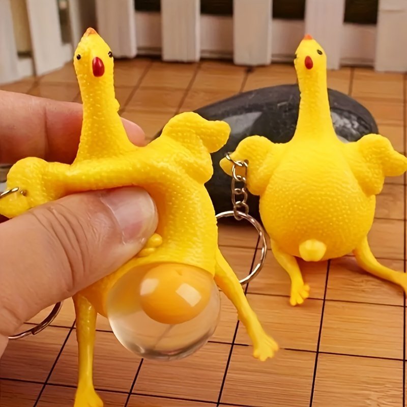 1Pc Funny Squeeze Chicken Laying Egg Keychain Anti-Stress Tricky Toys Gag Children’S Gift
