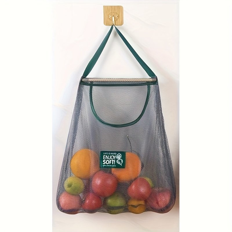 1Pc Hanging Mesh Storage Bag With Handle For Fruits And Vegetables, Kitchen Ginger Garlic Food Storage Net Pocket