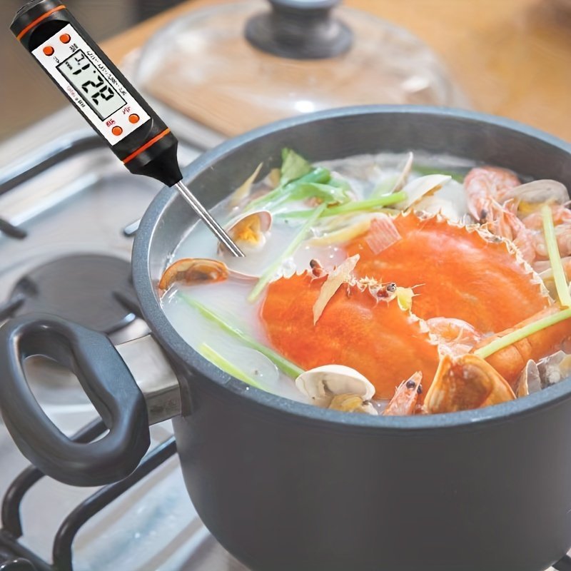 1Pc Instant Read Digital Meat Thermometer With Probe – Stainless Steel, Lcd Display, -200?C To 550?C Range – Perfect For Bbq, Cooking, Grilling, And Candy Making